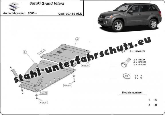 Aluminium Unterfahrschutz für Getriebe und Verteilergetriebe für den Suzuki Grand Vitara 2 (2005-2019)