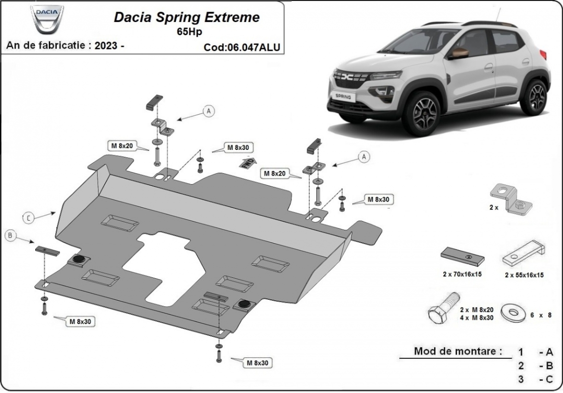 Aluminium Unterfahrschutz Dacia Spring Extreme