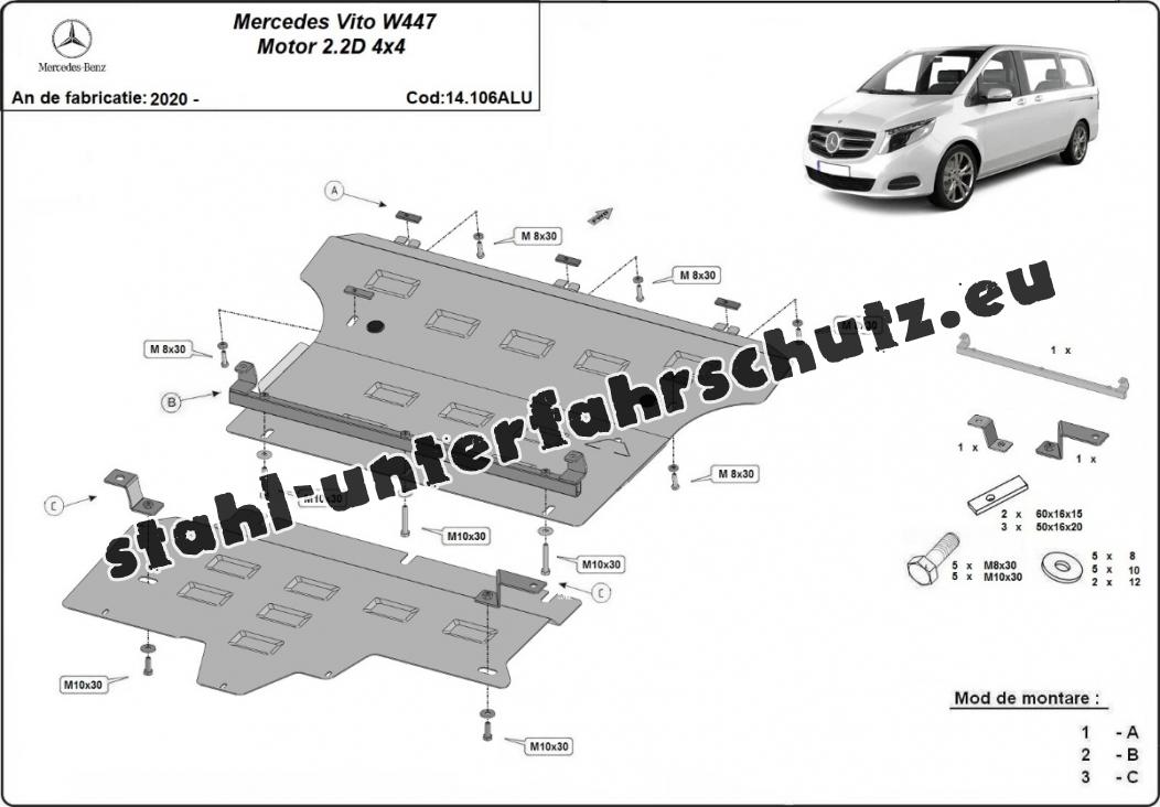 Aluminium Unterfahrschutz für Motor der Marke Mercedes Vito W447 (2020-2025)
