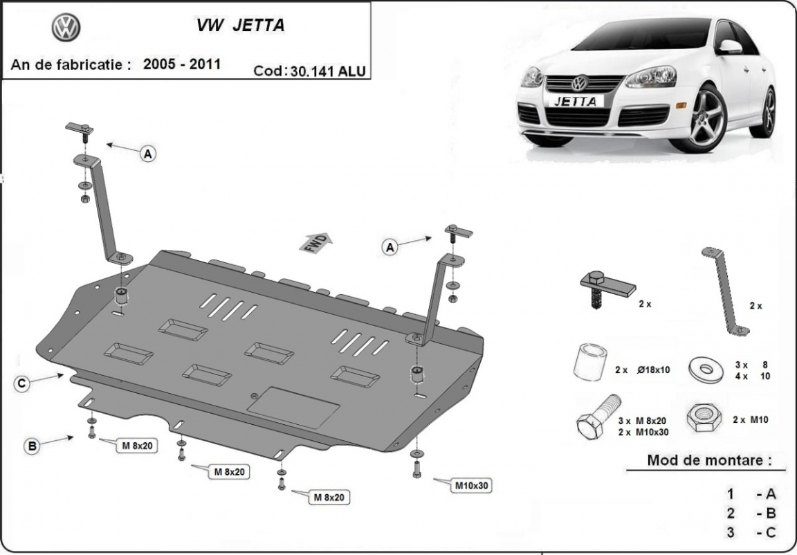 Die Abschirmung schützt: motor, getriebe, kühler VW Jetta - 2005 und 2011. Der Unterfahrschutz ist neu und passt perfekt für alle VW Jetta versionen, die zwischen 2005 und 2011 hergestellt wurden. Aus Aluminiumblech angefertigt mit einer Stärke von 3 mm. Die Schilde bestehen aus Aluminium, aber die Befestigungshalterungen bestehen aus Stahl. Schrauben, Mutter, Klips - alle Befestigungszubehör sind im Lieferung enthalten. Um mehr Schutz zu bieten gegen Korrosion wird der Unterfahrschutz elektrostatisch besprüht (Pulverbeschichtet) und bei 200o eingebrannt bzw. getrocknet. |