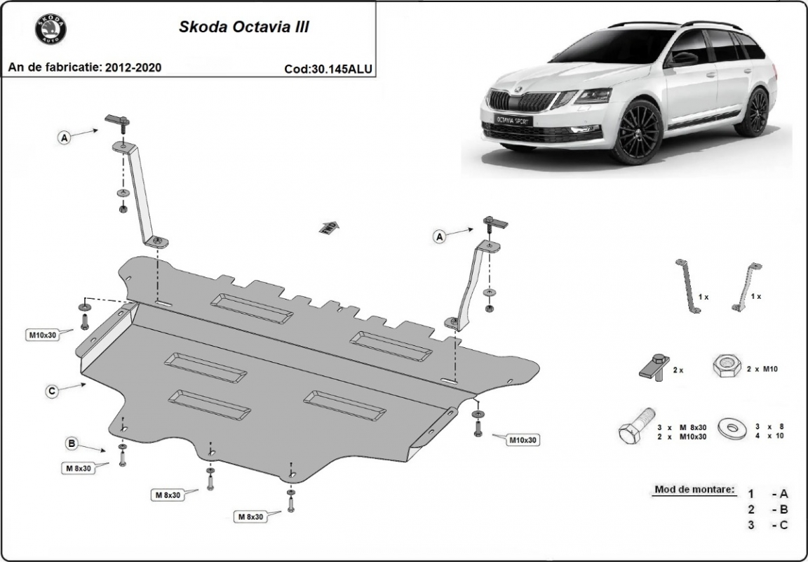 Aluminium Unterfahrschutz für Motor und Getriebe für Skoda Octavia 3 (2012-2020)