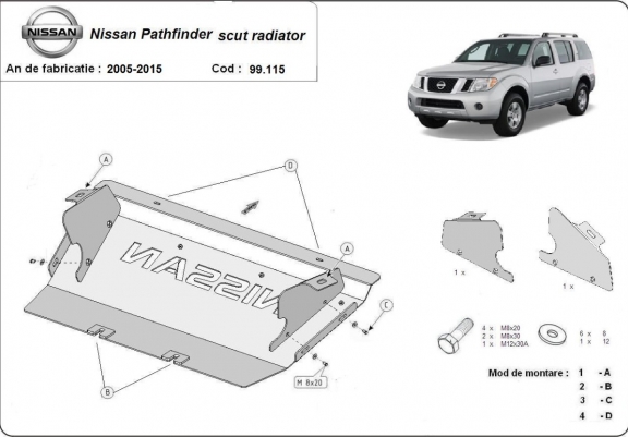Die Abschirmung schützt: kühler Nissan Pathfinder - 2005 und 2015. Der Unterfahrschutz ist neu und passt perfekt für alle Nissan Pathfinder versionen, die zwischen 2005 und 2015 hergestellt wurden. Aus Stahlblech angefertigt mit einer Stärke von 3 mm. Schrauben, Mutter, Klips - alle Befestigungszubehör sind im Lieferung enthalten. Um mehr Schutz zu bieten gegen Korrosion wird der Unterfahrschutz elektrostatisch besprüht (Pulverbeschichtet) und bei 200o eingebrannt bzw. getrocknet. |