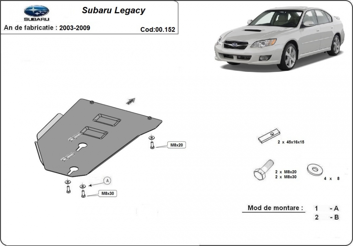 Die Abschirmung schützt: getriebe Subaru Legacy - 2003 und 2009. Der Unterfahrschutz ist neu und passt perfekt für alle Subaru Legacy versionen, die zwischen 2003 und 2009 hergestellt wurden. Aus Stahlblech angefertigt mit einer Stärke von 2 mm. Schrauben, Mutter, Klips - alle Befestigungszubehör sind im Lieferung enthalten. Um mehr Schutz zu bieten gegen Korrosion wird der Unterfahrschutz elektrostatisch besprüht (Pulverbeschichtet) und bei 200o eingebrannt bzw. getrocknet. |