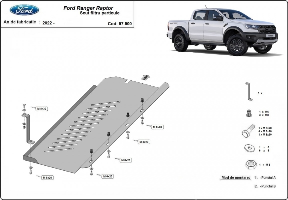 Die Abschirmung schützt: DPF , Partikelfilter Ford Ranger Raptor - 2020 und 2023. Der Unterfahrschutz ist neu und passt perfekt für alle Ford Ranger Raptor versionen, die zwischen 2020 und 2023 hergestellt wurden. Aus Stahlblech angefertigt mit einer Stärke von 2 mm. Schrauben, Mutter, Klips - alle Befestigungszubehör sind im Lieferung enthalten. Um mehr Schutz zu bieten gegen Korrosion wird der Unterfahrschutz elektrostatisch besprüht (Pulverbeschichtet) und bei 200o eingebrannt bzw. getrocknet. |