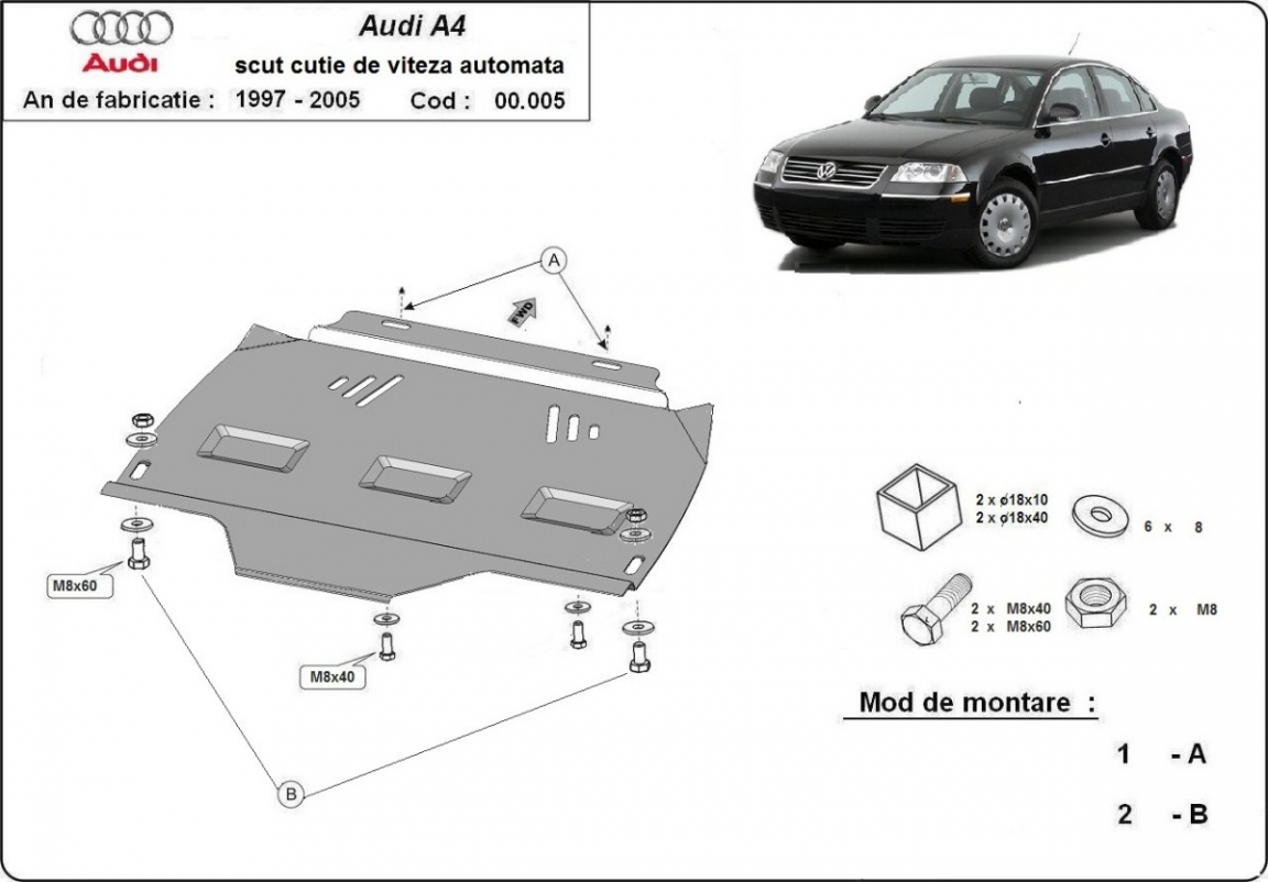 Unterfahrschutz aus Stahl für Automatikgetriebe der Marke VW Passat B5, B5.5