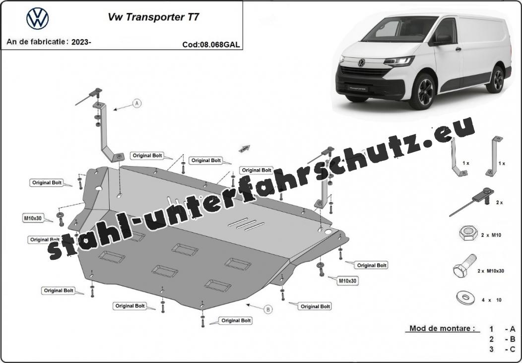 Unterfahrschutz aus verzinktem Stahl für Motor der Marke Volkswagen Transporter T7 (2023-2025)