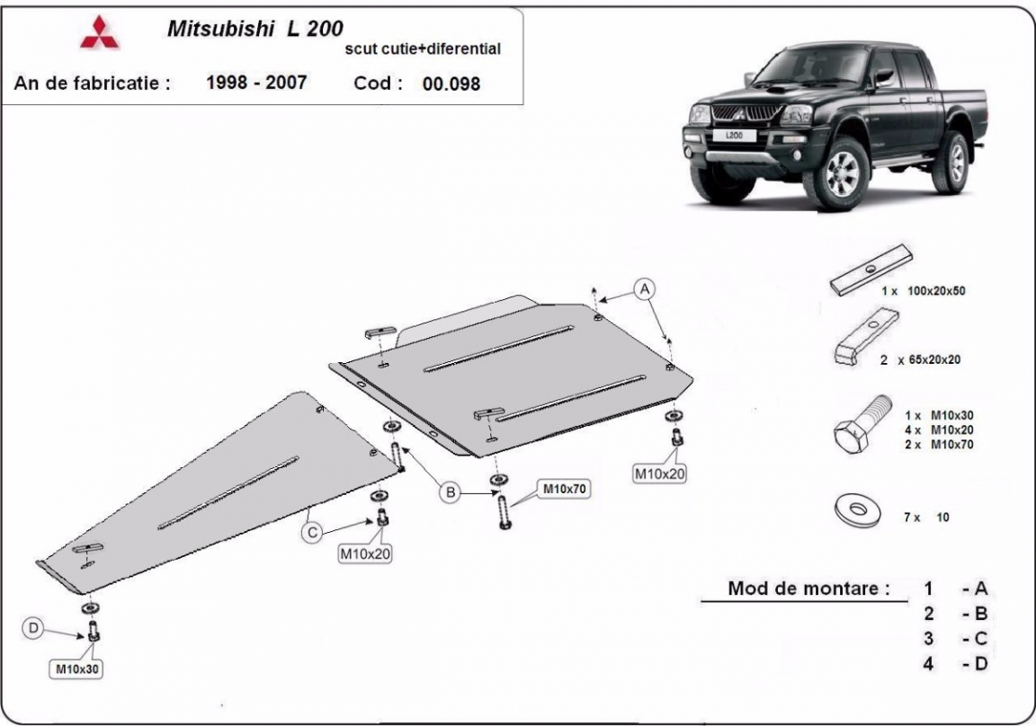 Unterfahrschutz für Getriebe und Differential aus Mitsubishi L 200 (1998-2007)
