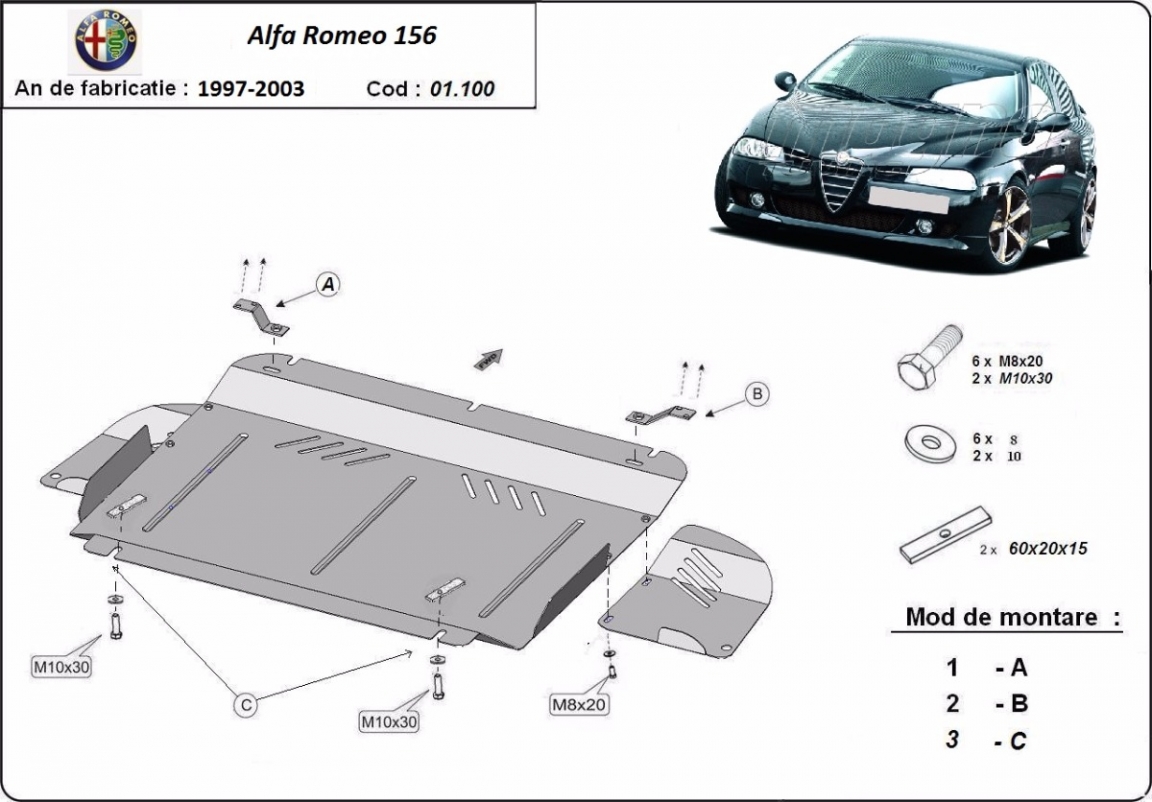 Unterfahrschutz für Motor der Marke Alfa Romeo 156 (1997-2003)