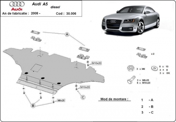 Unterfahrschutz für Motor der Marke Audi A5, diesel (2008-2016)