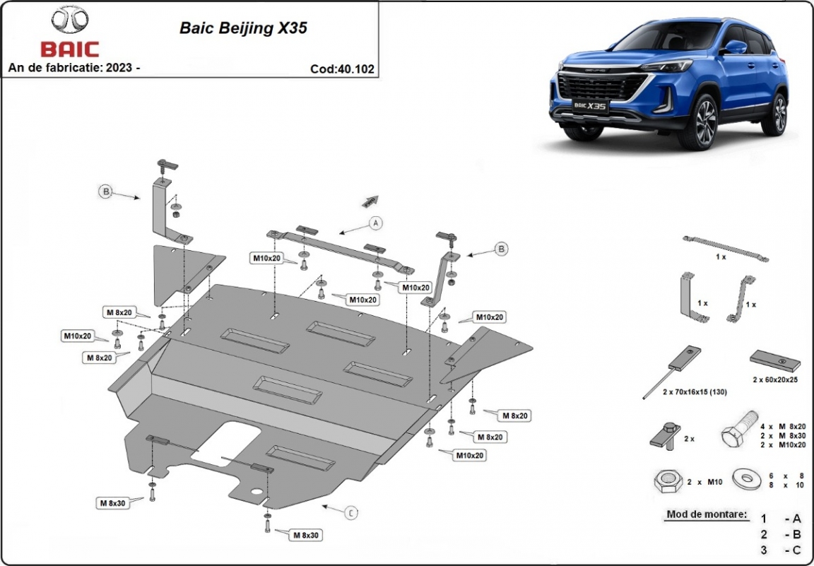 Unterfahrschutz für Motor der Marke Baic Beijing X35 (2023-2026)