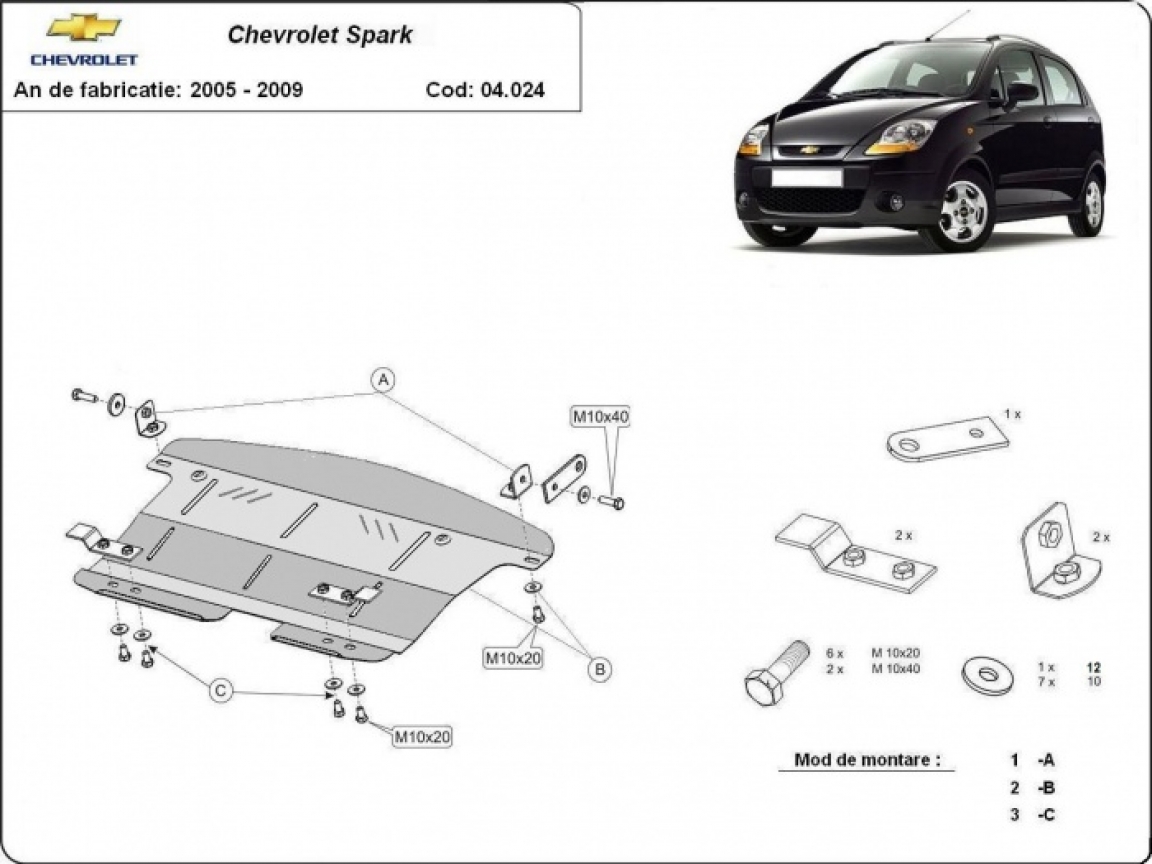 Unterfahrschutz für Motor der Marke Chevrolet Spark