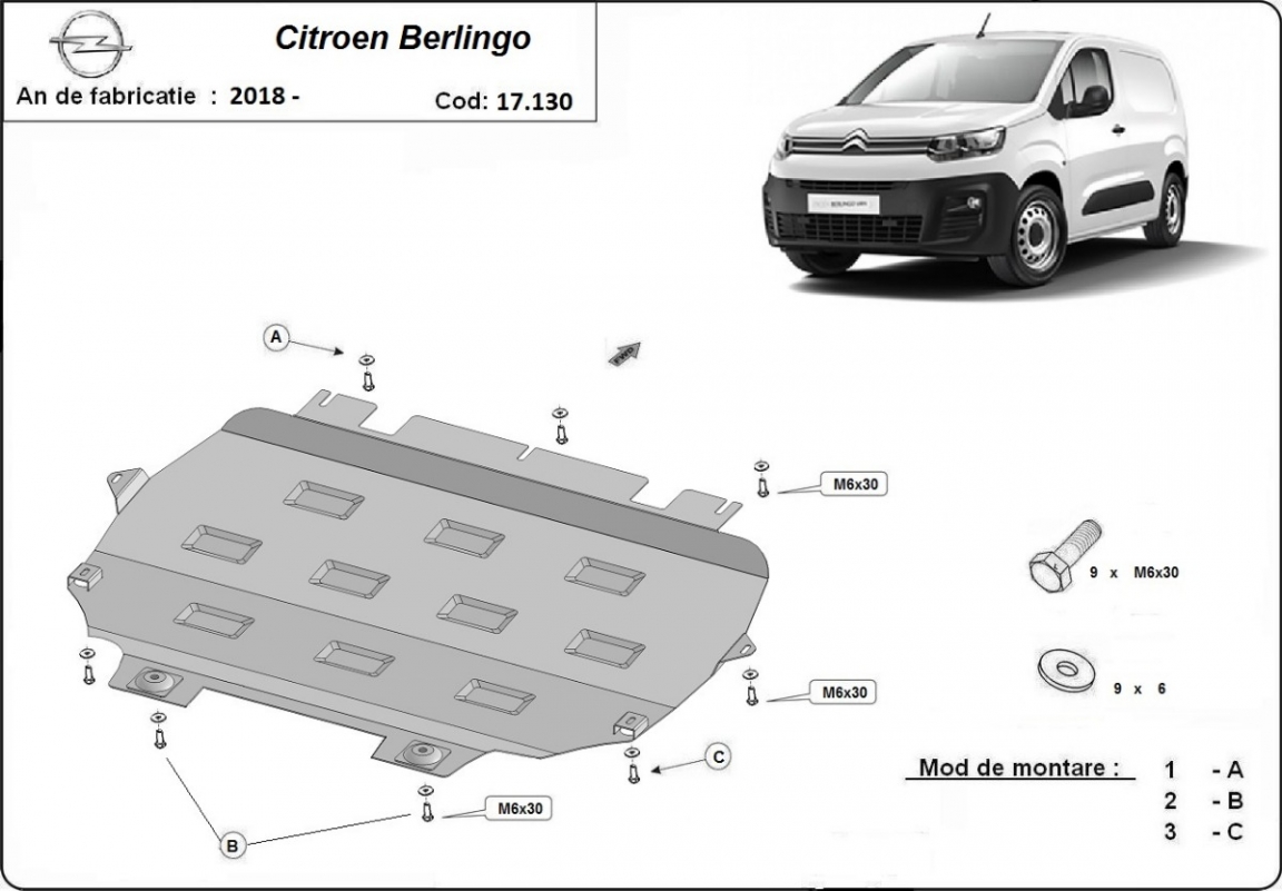 Unterfahrschutz für Motor der Marke Citroen Berlingo (2018-2026)