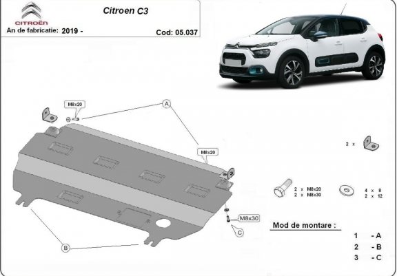 Unterfahrschutz für Motor der Marke Citroen C3 (2019-2026)