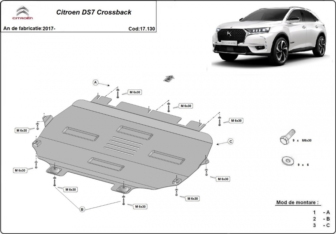 Die Abschirmung schützt: motor, getriebe, kühler Citroen C4 - 2017 und 2026. Der Unterfahrschutz ist neu und passt perfekt für alle Citroen C4 versionen, die zwischen 2017 und 2026 hergestellt wurden. Aus Stahlblech angefertigt mit einer Stärke von 2 mm. Schrauben, Mutter, Klips - alle Befestigungszubehör sind im Lieferung enthalten. Um mehr Schutz zu bieten gegen Korrosion wird der Unterfahrschutz elektrostatisch besprüht (Pulverbeschichtet) und bei 200o eingebrannt bzw. getrocknet. |