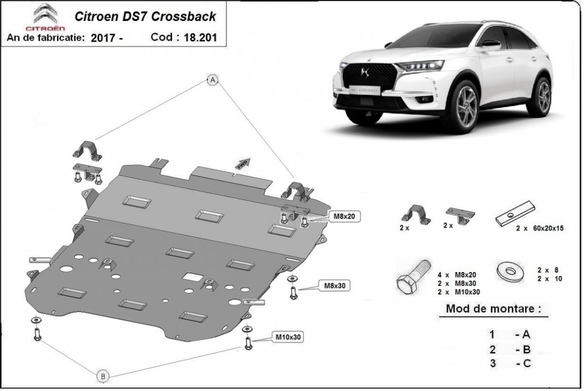 Unterfahrschutz für Motor der Marke Citroen DS7 Crossback (2017-2026)