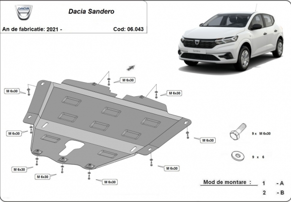 Unterfahrschutz für Motor der Marke Dacia Sandero 3 (2021-2026)