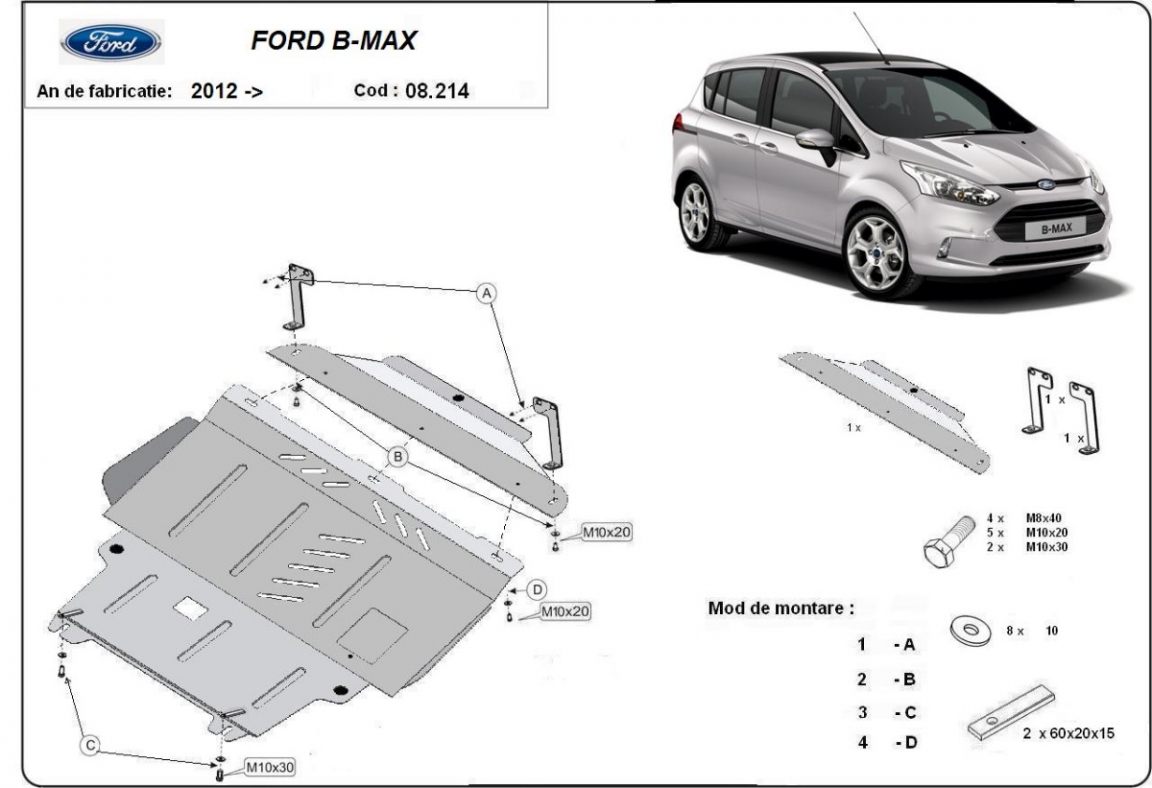 Unterfahrschutz für Motor der Marke Ford B-Max (2012-2017)