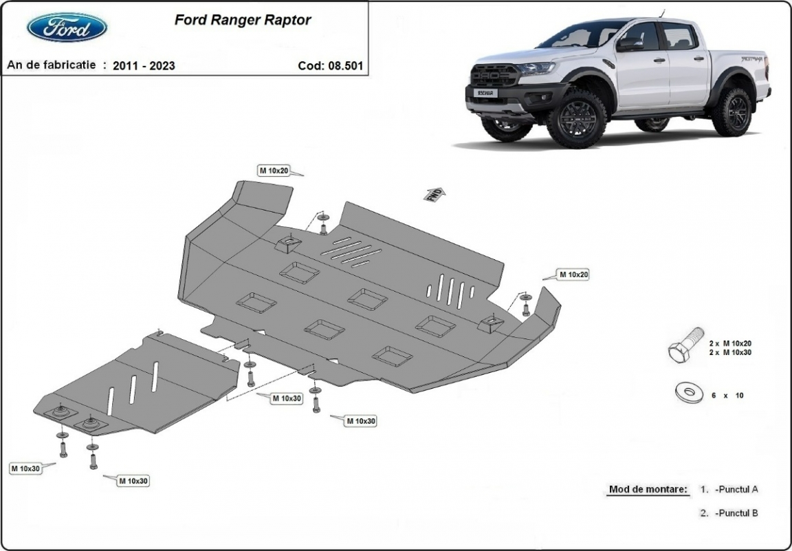 Die Abschirmung schützt: motor, vordere stossfänger Ford Ranger Raptor - 2020 und 2023. Der Unterfahrschutz ist neu und passt perfekt für alle Ford Ranger Raptor versionen, die zwischen 2020 und 2023 hergestellt wurden. Aus Stahlblech angefertigt mit einer Stärke von 3 mm. Schrauben, Mutter, Klips - alle Befestigungszubehör sind im Lieferung enthalten. Um mehr Schutz zu bieten gegen Korrosion wird der Unterfahrschutz elektrostatisch besprüht (Pulverbeschichtet) und bei 200o eingebrannt bzw. getrocknet. |