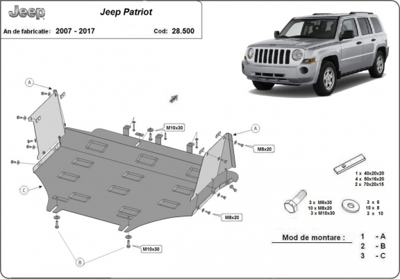 Unterfahrschutz für Motor der Marke Jeep Patriot (2007-2017)