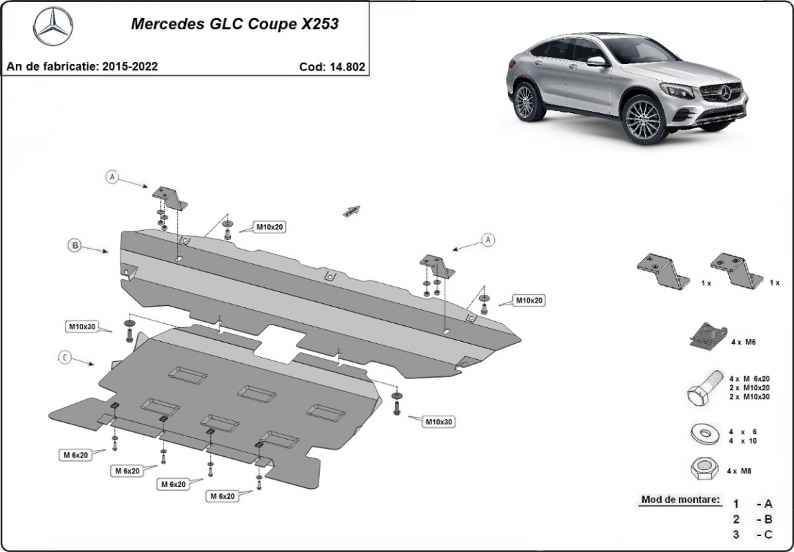 Unterfahrschutz für Motor der Marke Mercedes GLC Coupe X253 (2015-2022)