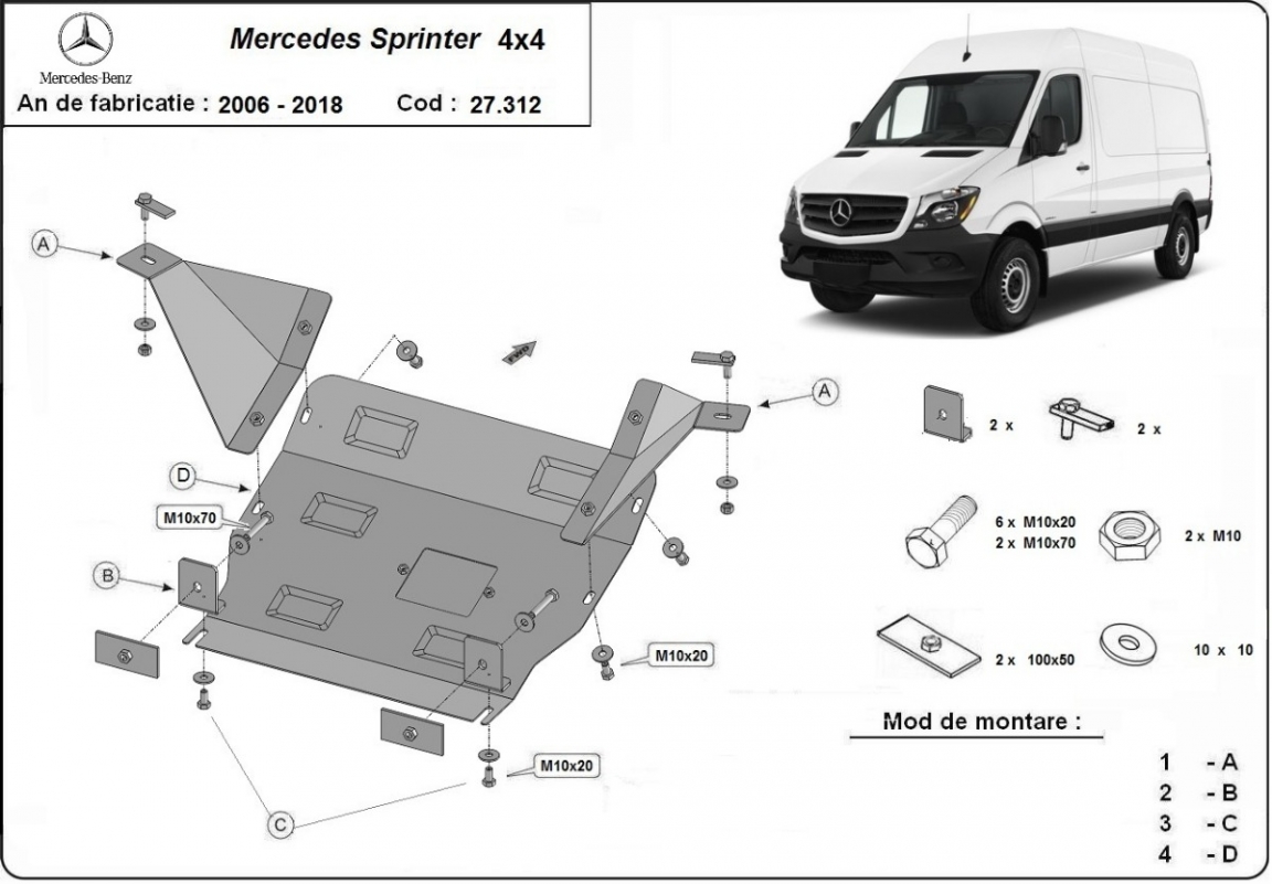 Unterfahrschutz für Motor der Marke Mercedes Sprinter 906 4x4