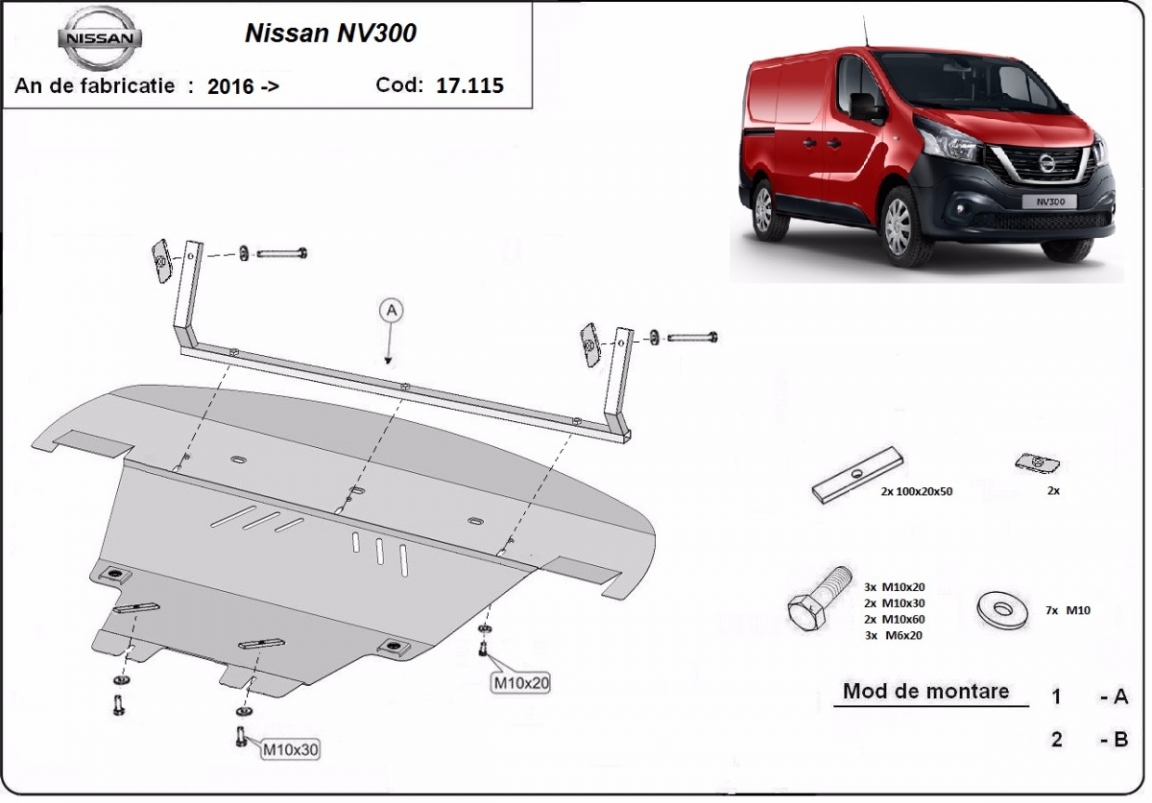 Die Abschirmung schützt: motor, getriebe, kühler, vordere stossfänger Nissan NV300 - 2014 und 2021. Der Unterfahrschutz ist neu und passt perfekt für alle Nissan NV300 versionen, die zwischen 2014 und 2021 hergestellt wurden. Aus Stahlblech angefertigt mit einer Stärke von 2 mm. Schrauben, Mutter, Klips - alle Befestigungszubehör sind im Lieferung enthalten. Um mehr Schutz zu bieten gegen Korrosion wird der Unterfahrschutz elektrostatisch besprüht (Pulverbeschichtet) und bei 200o eingebrannt bzw. getrocknet. |