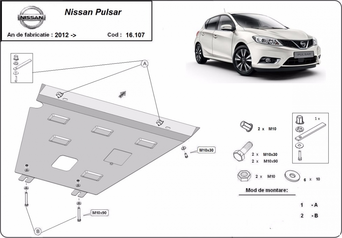 Unterfahrschutz für Motor der Marke Nissan Pulsar (2012-2018)