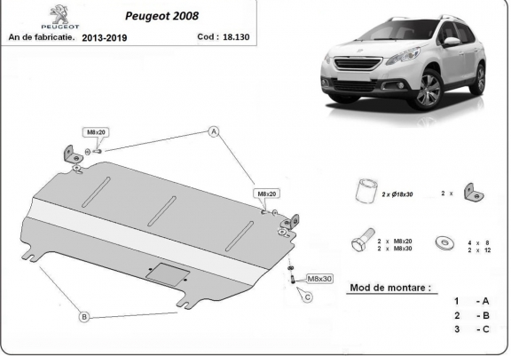 Unterfahrschutz für Motor der Marke Peugeot 2008 (2013-2019)