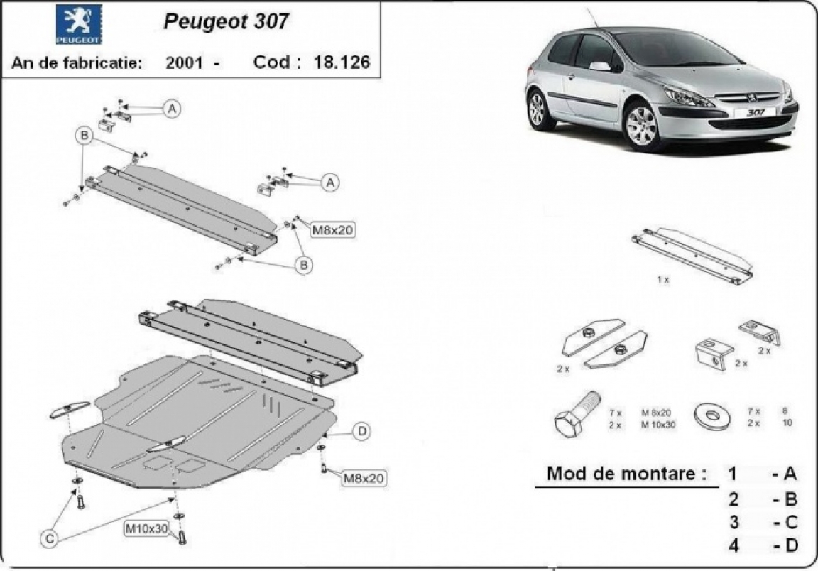 Unterfahrschutz für Motor der Marke Peugeot 307 (2001-2008)