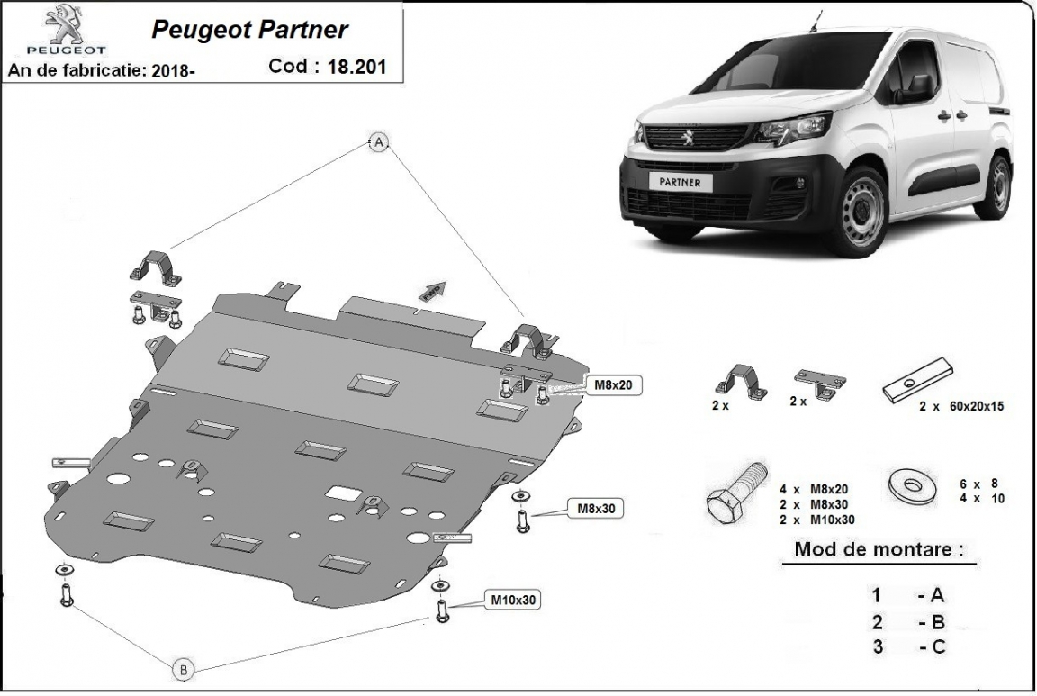 Unterfahrschutz für Motor der Marke Peugeot Partner (2018-2026)