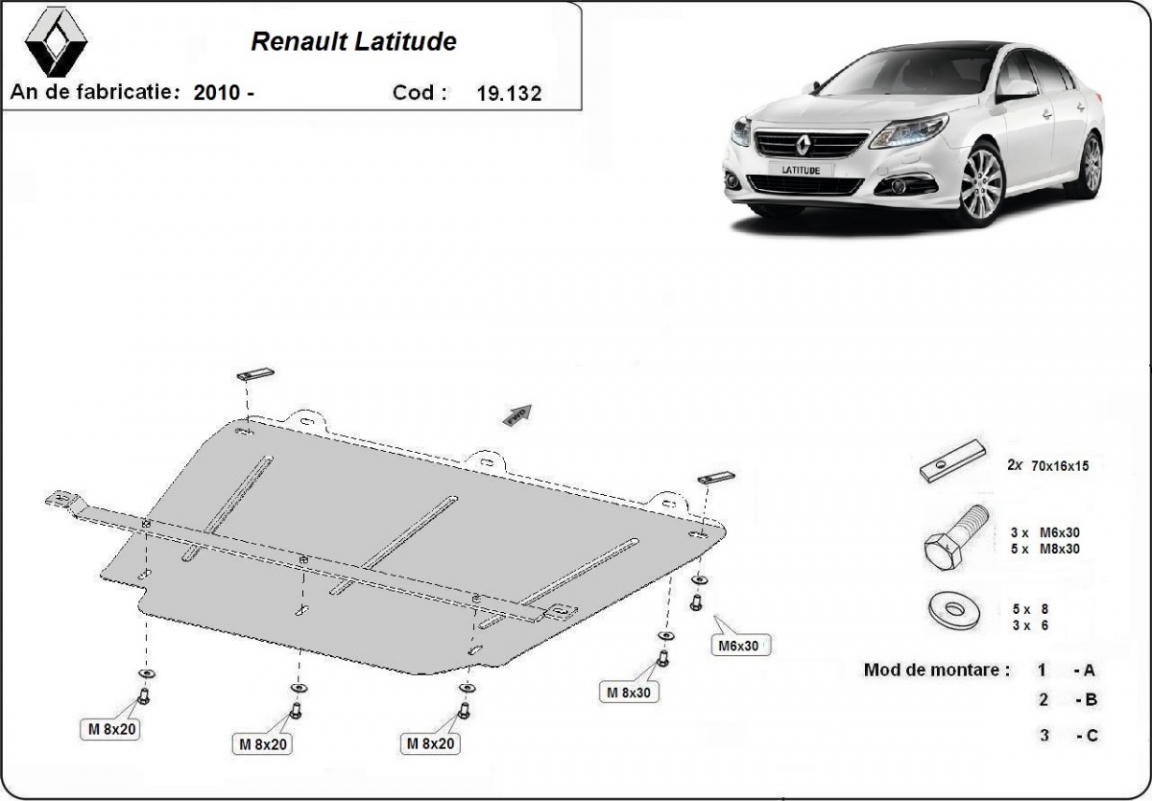Unterfahrschutz für Motor der Marke Renault Latitude (2010-2015)