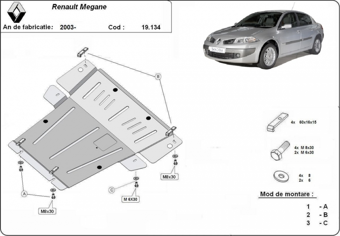 Unterfahrschutz für Motor der Marke Renault Megane 2 (2004-2008)