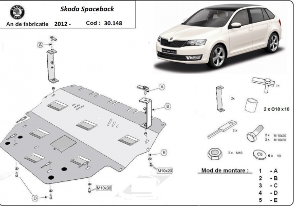 Unterfahrschutz für Motor der Marke Skoda Spaceback (2013-2019)