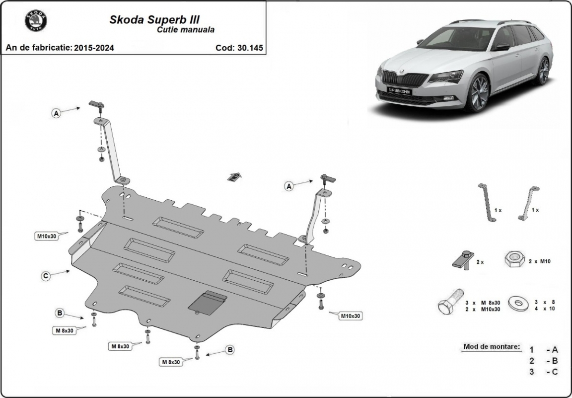 Unterfahrschutz für Motor der Marke Skoda Superb - Schaltgetriebe (2015-2024)