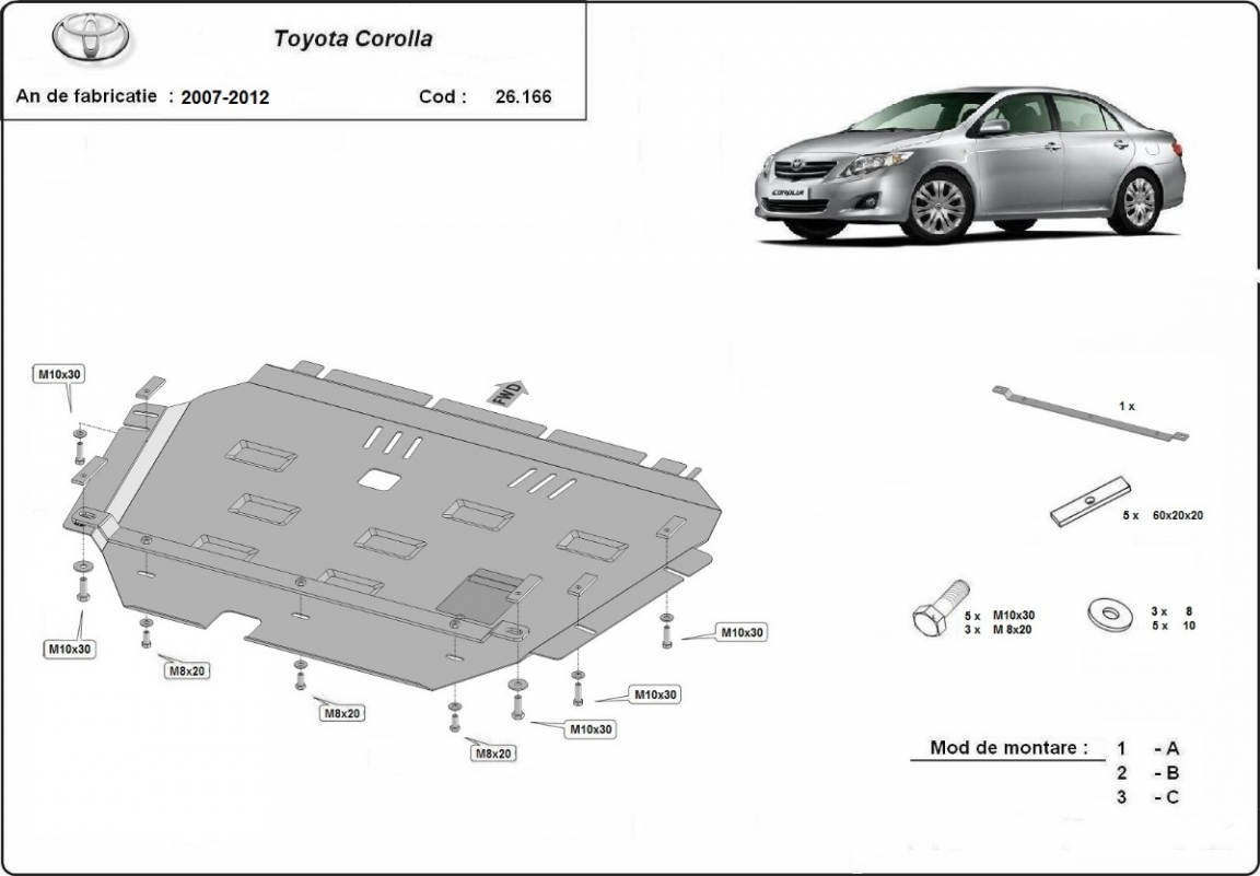 Unterfahrschutz für Motor der Marke Toyota Corolla (2007-2012)