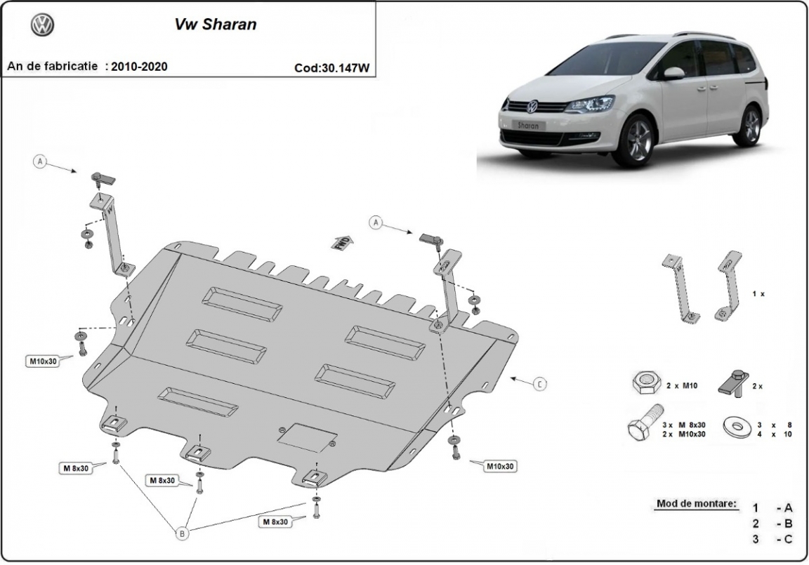 Unterfahrschutz für Motor der Marke Volkswagen Sharan - Webasto (2010-2020)