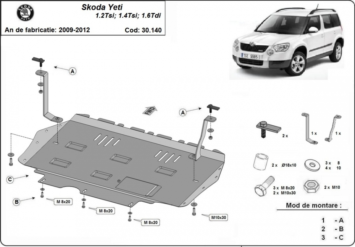 Unterfahrschutz für Motor und Getriebe aus Stahl für Skoda Yeti (2009-2012)